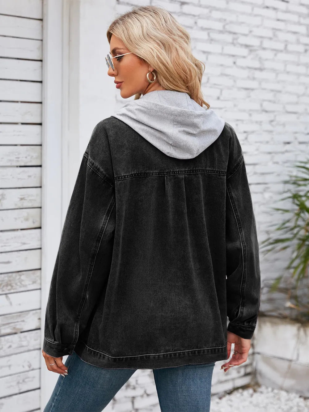 Pocketd Button Up Detachable Hooded Denim Jacket