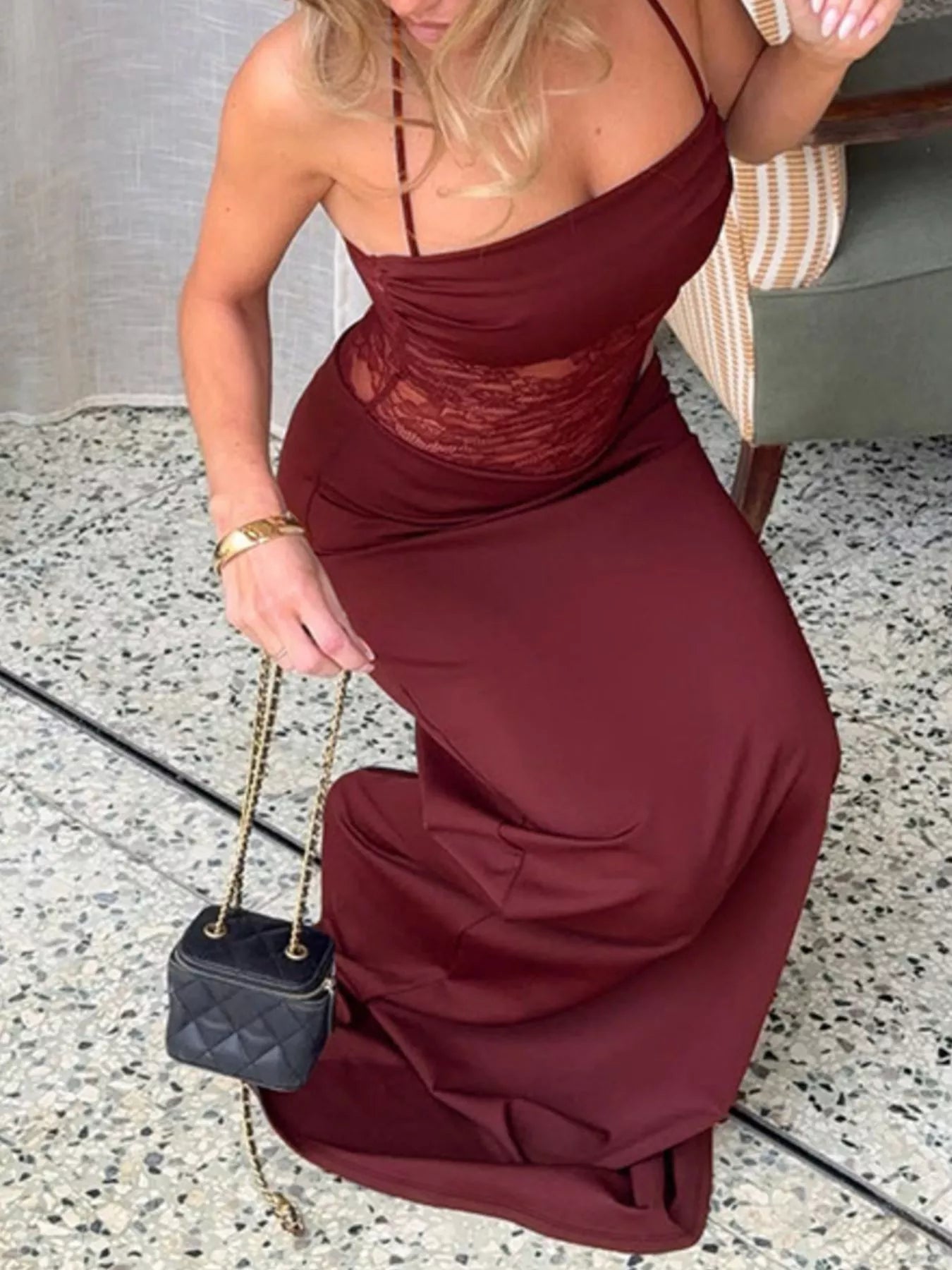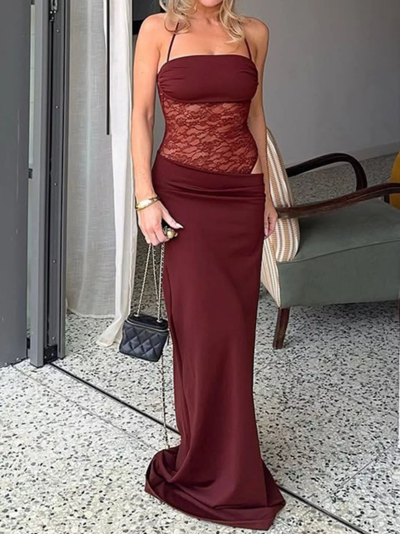 Lace Panel Bodycon Maxi Dress