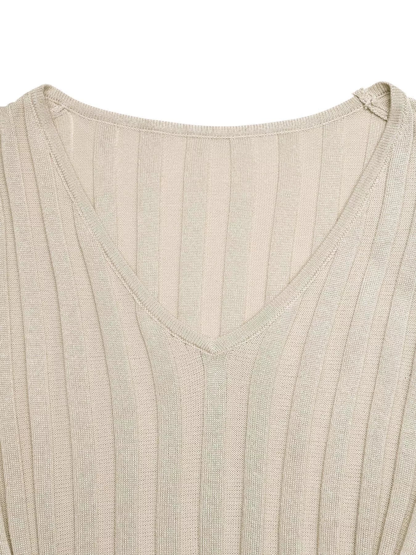Ribbed Knit V-Neck Long Sleeve Maxi Dress